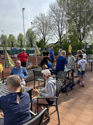 De deelnemers lieten zich van hun beste kant zien op de tennisbanen, waar de competitie hoog opliep. Naast de spannende wedstrijden was er voor de jongere bezoekers ook genoeg te beleven. Een speurtocht door het park zorgde voor veel enthousiasme, en de kinderen konden hun geluk niet op tijdens het paaseieren zoeken. Met vrolijke gezichten en mandjes vol kleurrijke eieren keerden ze terug naar de tennisbanen.