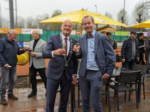 De buitenbanen gaan bijna weer open. We hebben er dit jaar iets langer op moeten wachten door de slechte weersomstandigheden. Gelukkig laten Philip, Harry en de klusploeg zich er niet door uit de (gravel)baan slaan.